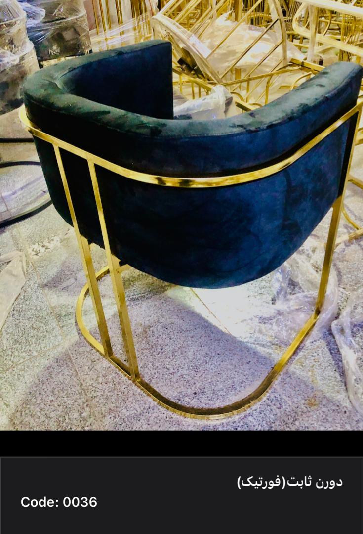 صندلی دررنگ بندی طلایی وکروم ورنگ بندی چرم و پارچه