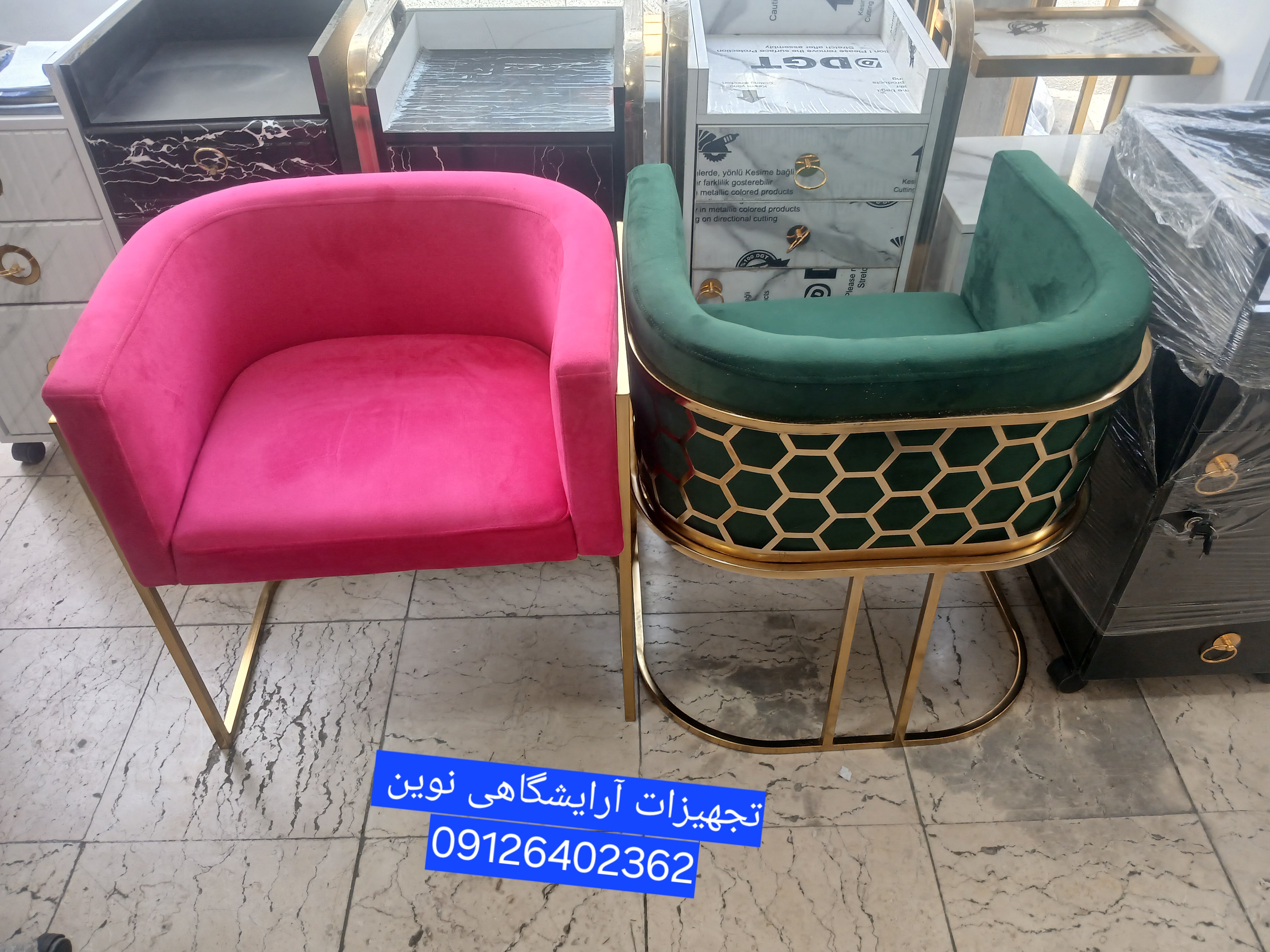 صندلی فلزی مدل زنبوری دررنگ بنده طلایی ونقره ای وزنگ بندی چرم وپارجه
