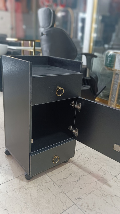 ترولی چوبی دوکشو ویه در کمدی در اندازه ۴۰در۴۰ و ارتفاع ۸۰ از زمین و پایه چرخ دار میباشد رنگ مشکی ۱۵۰ هزار افزایش قیمت دارد