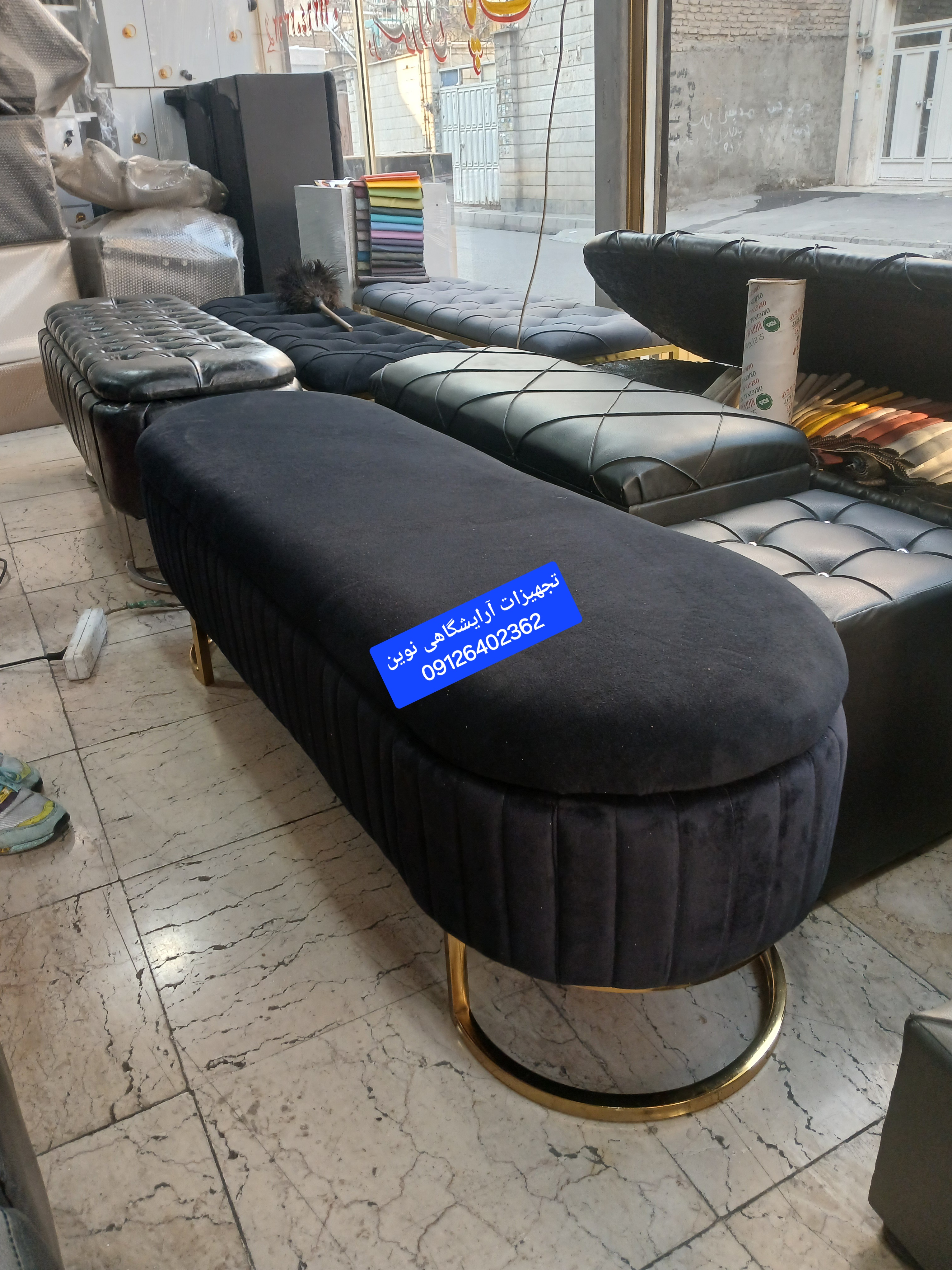 پاف باکسدار سه نفره شیاری دررنگ بندی متنوع پارچه وچرم