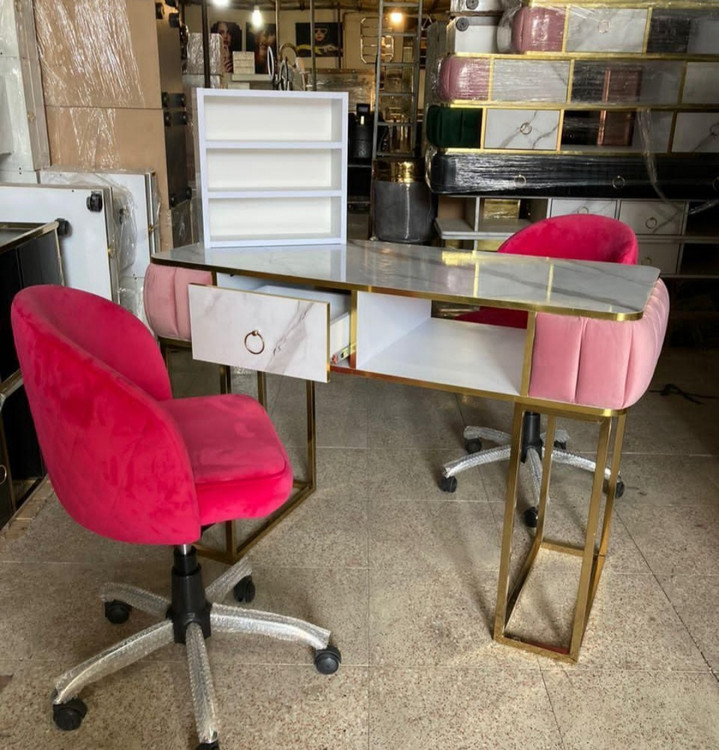 میزناخن ارایشگاهی تک نفره دردومدل بغل خم وصاف وپایه طلایی ونقره ای ورنگ بندی پارچه طول ۱۲۰