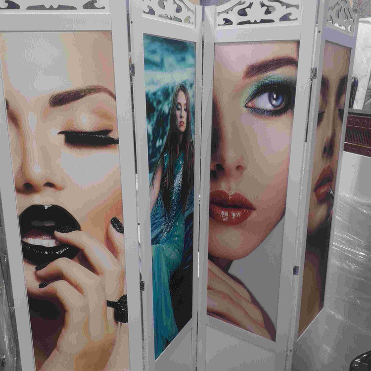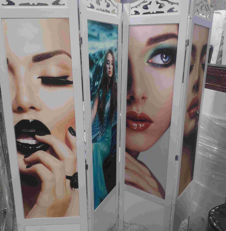 پاراوان ساده وعکس دار چهارتیکه سفید وقهوای