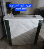 کانتر آرایشگاهی وکیوم دررنگ بندی سفید ومشکی وطوسی بغل پارچه کار شده سرتاسر دارای دوکشو میباشد ارتفاع یک متر طول یک متر عرض ۴۰ وقسمت جلو میز چراغ دارد