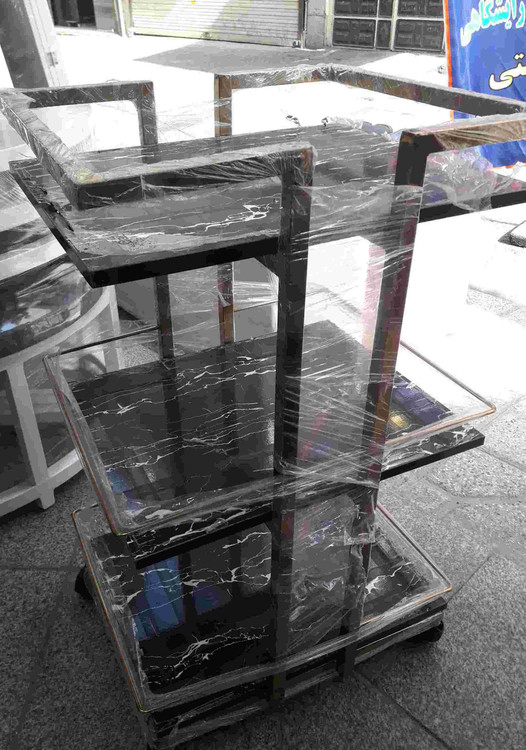 ترولی بدنه فلزی طلایی در طبقه سفیدومشکی چرخدار میباشد شیک ومحکم ارتفاع ۸۵ میباشد عمق ۴۵در۵۵