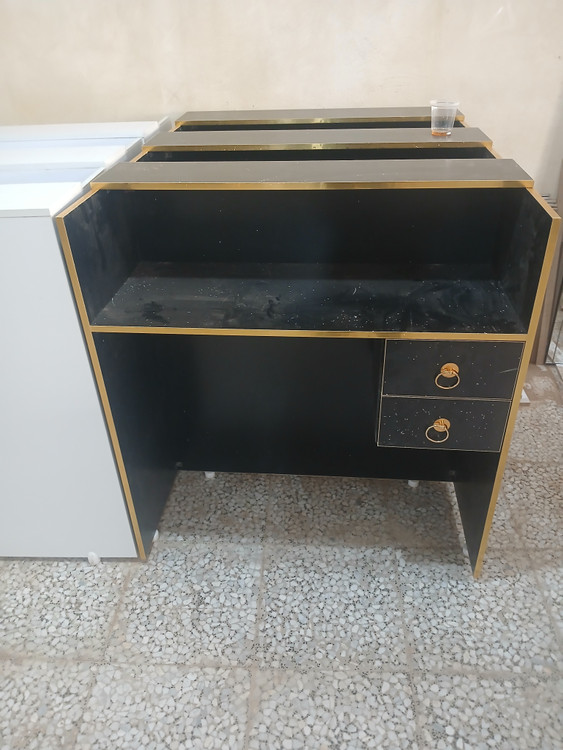 کانتر ام دی اف دررنگ بندی سفید ومشکی ۴۰دریک متر میباشد ودارای دوکشو در قسمت پشتی و دارای چراغ در قسمت جلو کانتر میباشد مناسب برای دفترکار آرایشگاه بوتیک و.....ارتفاع کانتر از زمین یک متر میباشد کانتر دررنگ های مختلف ساخته میشود که در این صورت افزایش قیمت دارد