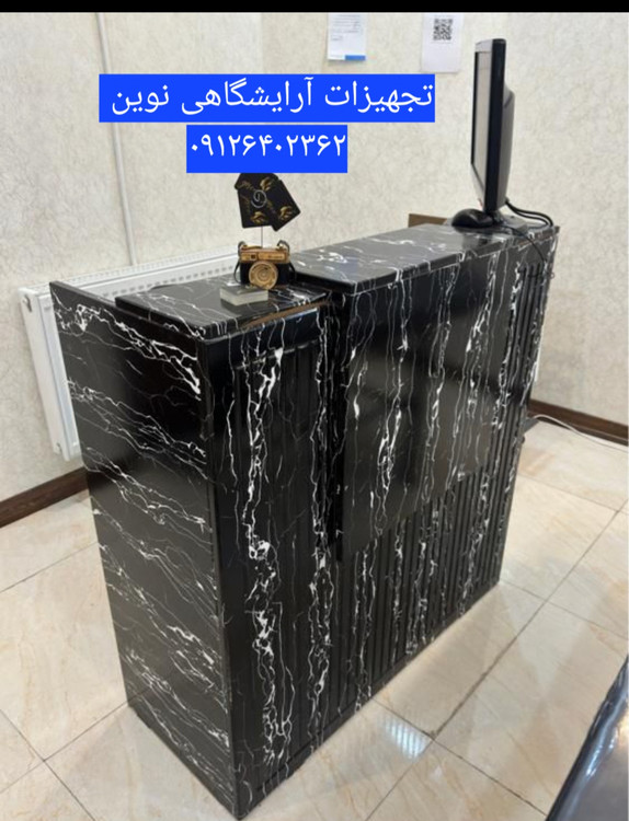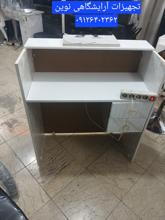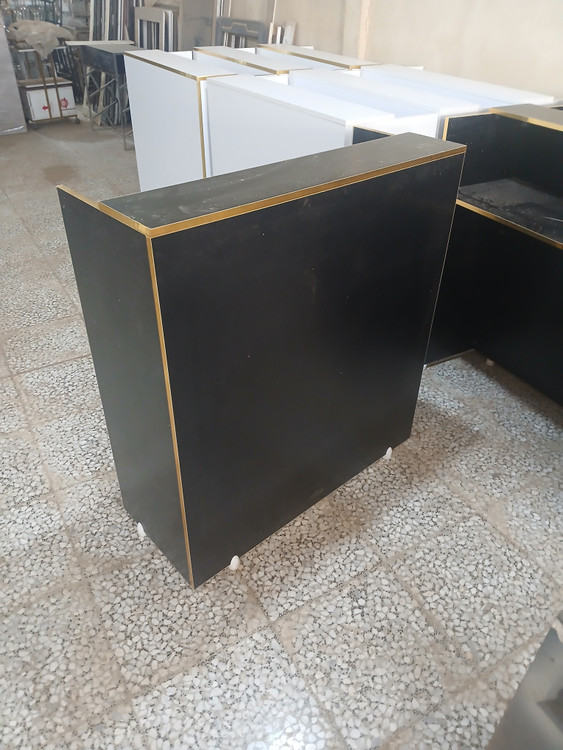 کانتر ام دی اف دررنگ بندی سفید ومشکی ۴۰دریک متر میباشد ودارای دوکشو در قسمت پشتی و دارای چراغ در قسمت جلو کانتر میباشد مناسب برای دفترکار آرایشگاه بوتیک و.....ارتفاع کانتر از زمین یک متر میباشد کانتر دررنگ های مختلف ساخته میشود که در این صورت افزایش قیمت دارد
