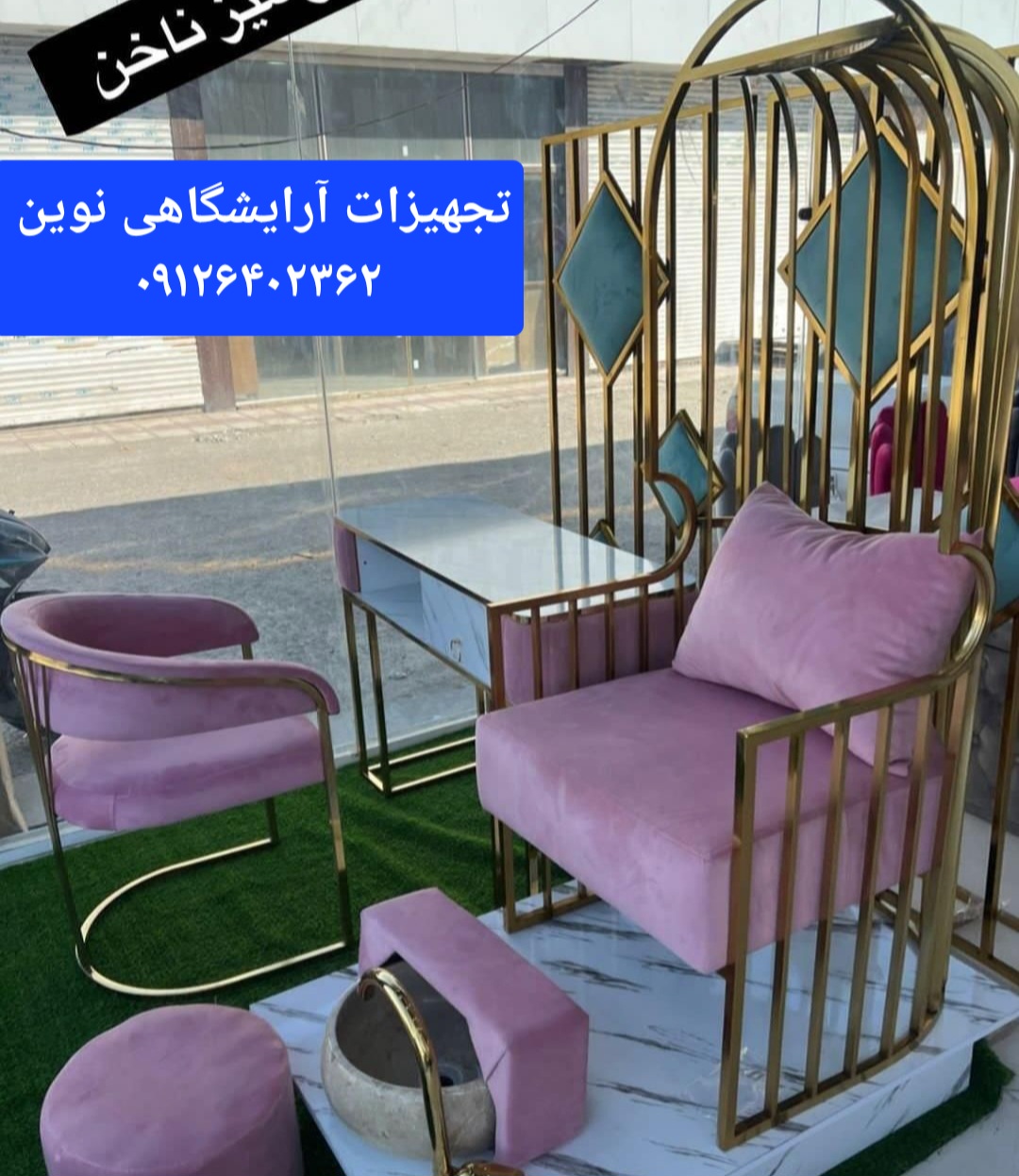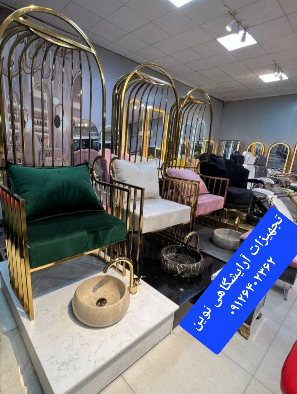 پدیکور شاه نشین همراه بااستیج باشیرآلات وپاف وزیرپایی دررنگ بندی متنوع چرم وپارچه وفلز بدنه طلایی ونقره ای