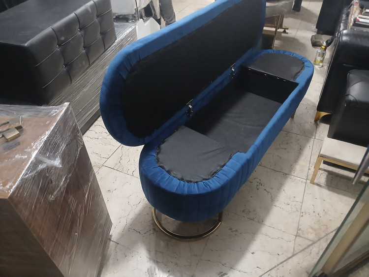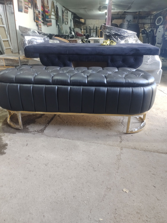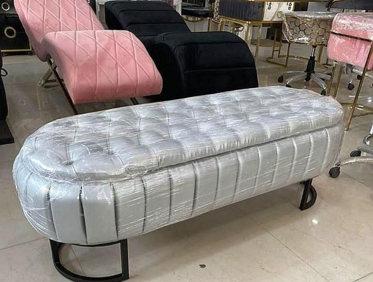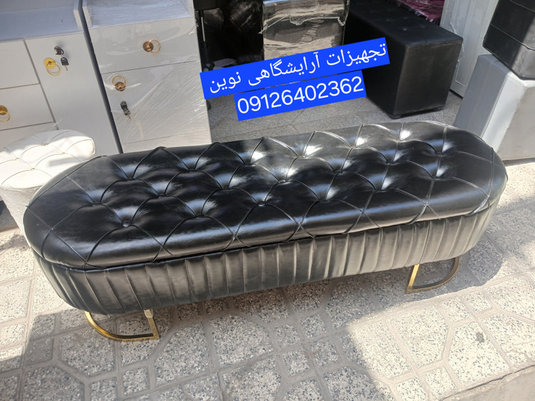 پاف چستر چرم آلگرو دررنگ بندی متنوع اندازه ۴۵در 140 باکسدا ر پایه فلزی آبکاری شده دردورنگ طلایی ونقره ای دررنگ بندی متنوع چرم وپارچه بسیارشیک ومقاوم