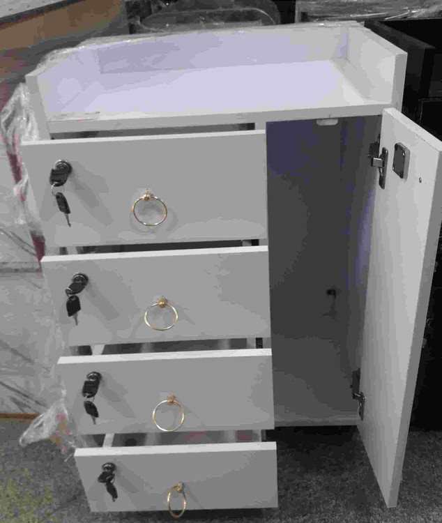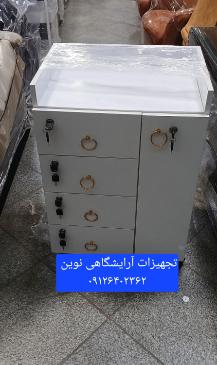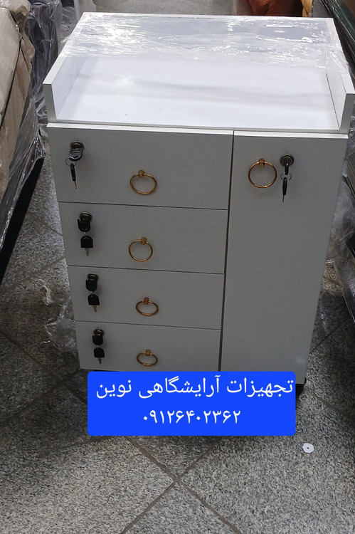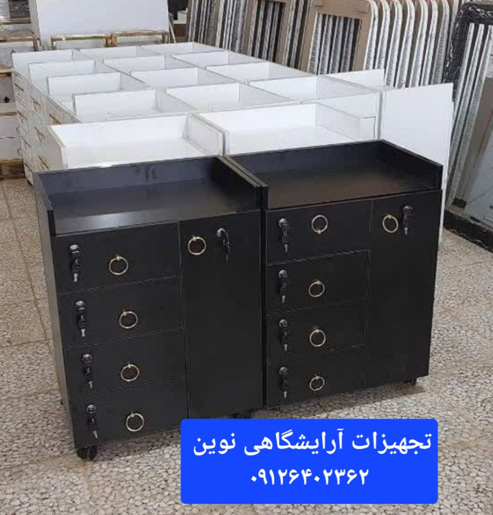 ترولی چوبی آرایشگاهی دارای چهارکشو و یک درقفلدار میباشد که کشو نیز قفل دار میباشد در ابعاد عمق ۴۰در۵۵ارتفاع ۸۰ وچرخدار میباشد دررنگ بندی سفیدومشکی