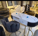 میز ناخن آرایشگاهی بغل پارچه پایه طلایی ونقره ای دررنگ بندی سفید ومشکی تگ نفره ۱۲۰