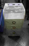 ترولی چوبی بغل خم سه کشو گرکره ای دررنگ بندی سفید ومشکی ۴۰در۴۰ لرتفاع ۶۵هزینه ارسال توسط مشتری درب منزل پرداخت میشود دارای جاسشواری