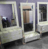 این محصول دارای سه تا دکور که دوتاش دوکشو ویکی تک کشو میباشد وسه تا قاب و همراه آینه میباشد اندازه آینه ها ۹۰در ۱۲۰ کوچیک و۹۰در۱۶۰ بزرگ میباشد در سه رنگ سفید مشکی کرم موجود میباشد برای شهرستان بدون آینه سه تا دکور وسع تا قاب خالی ارسال میشود