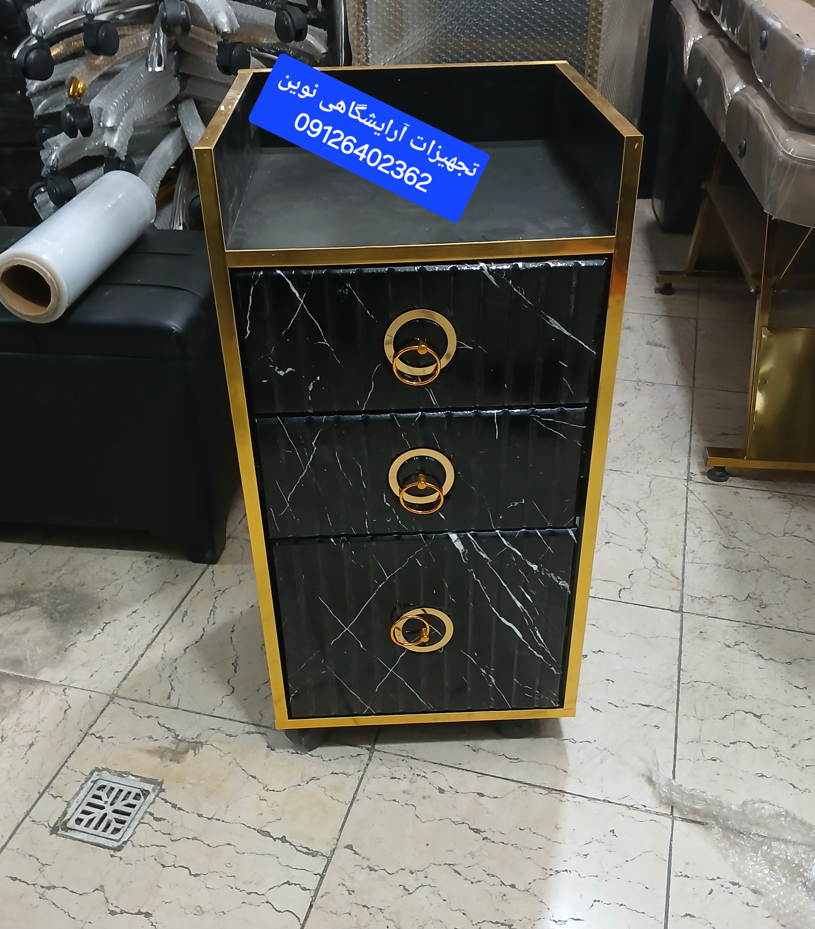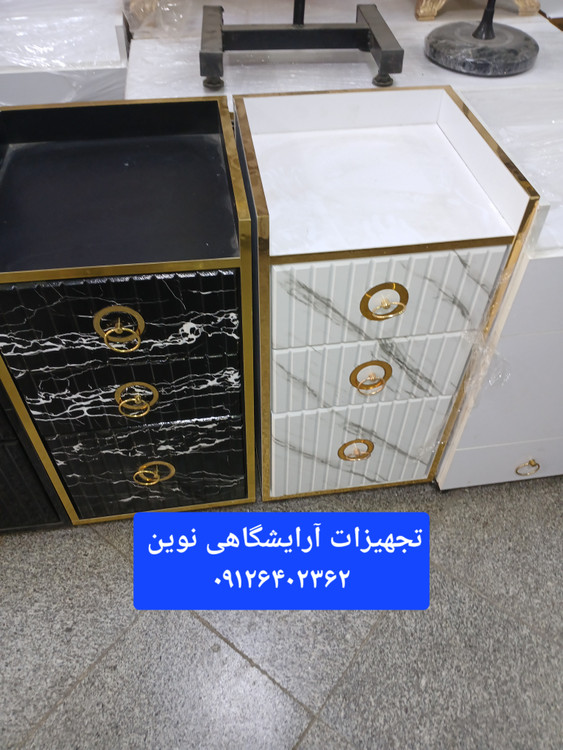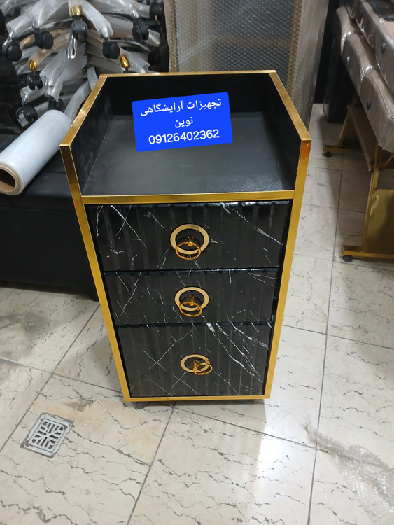 ترولی چوبی آرایشگاهی دارای دوکشو ویه در میباشد دردورنگ سفید ومشکی موجود میباشد چرخ دار میباشد ارتفاع از زمین ۸۰سانت و عرض ۴۰در۴۰ میباشد دوکشو بالا نیک در کمدی پایبن میباشد