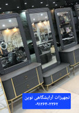 دکور آرایشگاهی سه تیکه بغل خم درر نگ بندی سفیدومشکی طوسی پایه فلزی آبکاری شده
