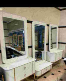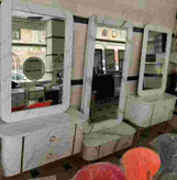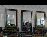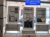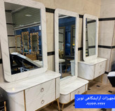 دکور آرایشگاهی سه تیکه بغل خم درر نگ بندی سفیدومشکی طوسی پایه فلزی آبکاری شده