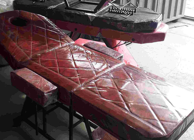 تخت‌ ماساژ آرایشگاهی سه تیگه چرم آلگرو خارجی دررنگ بندی متنوع چرم وپارچه
