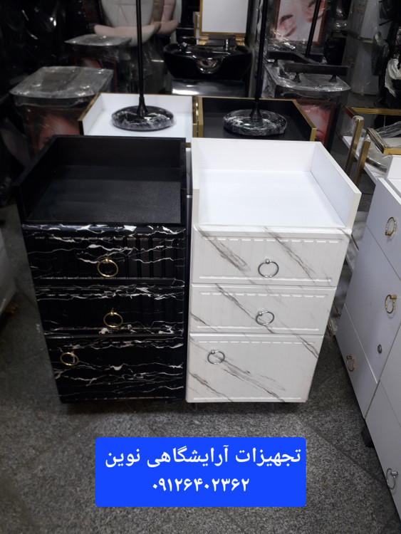 ترولی چوبی آرایشگاهی وکیوم دررنگ بندی سفید ومشکی