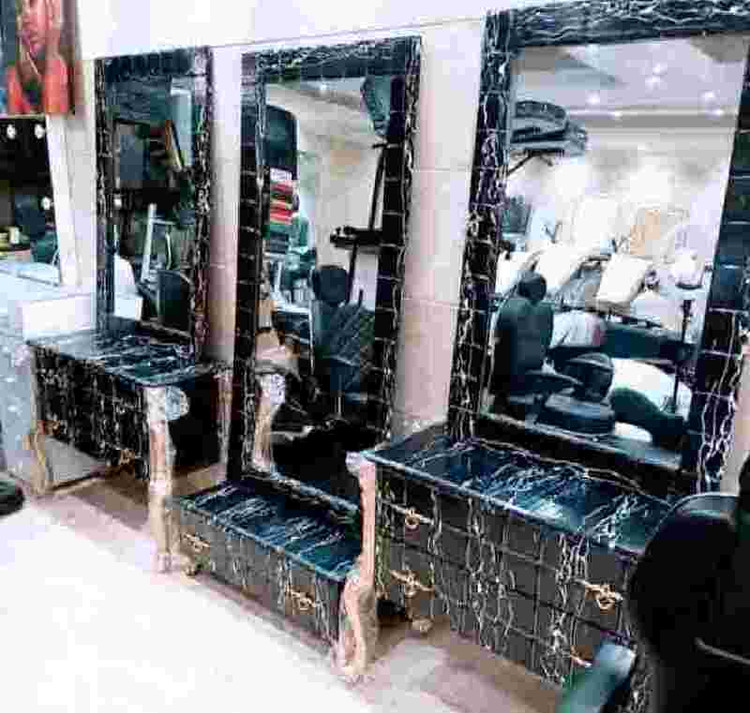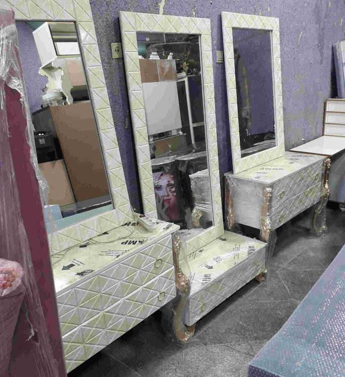 دکور آرایشگاهی سه تیکه پایه سلطنتی دررنگ بندی سفید ومشکی وکرم میباشد وپایه سفید وطلایی موجود میباشد