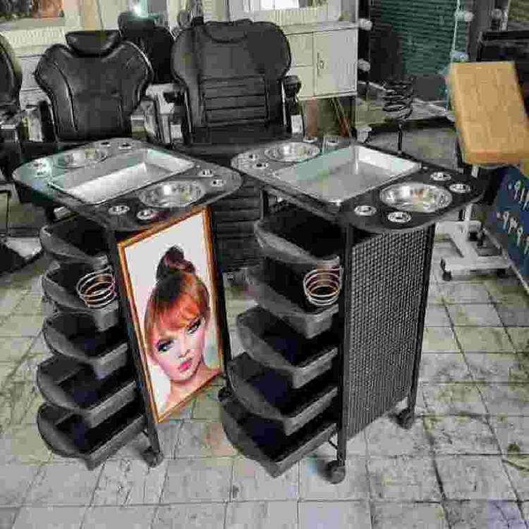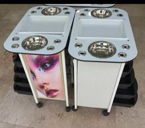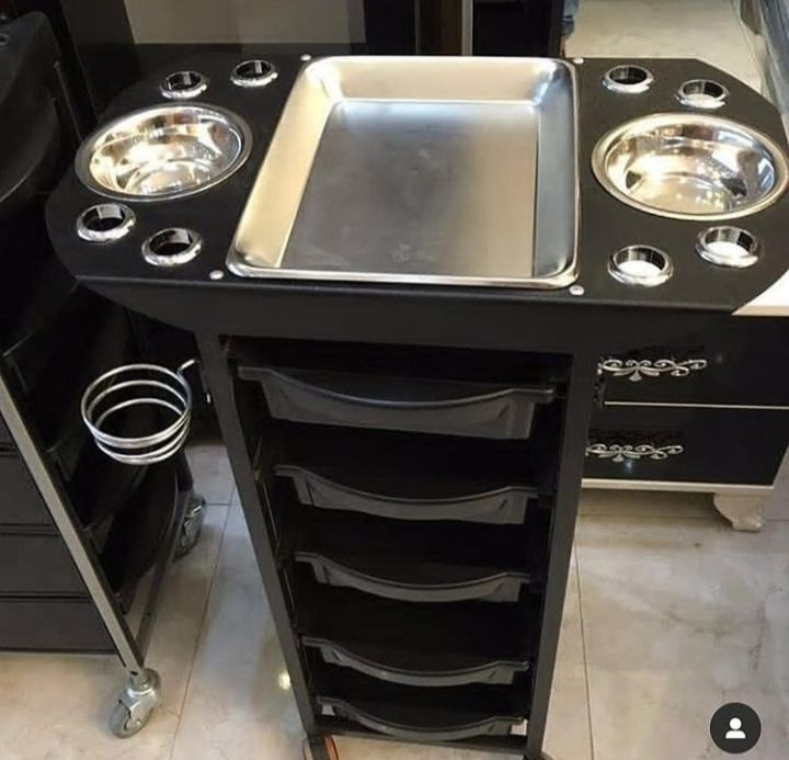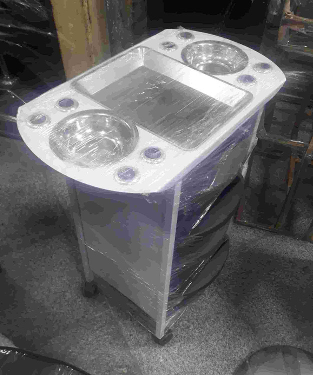 ترولی فلزی کاسه استیل دررنگ بندی سفیدومشکی