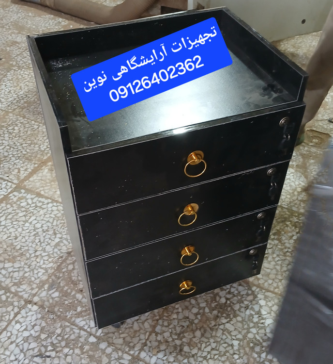 ترولی آرایشگاهی چهارکشو قفلدار دررنگ بندی سفیدومشکی
