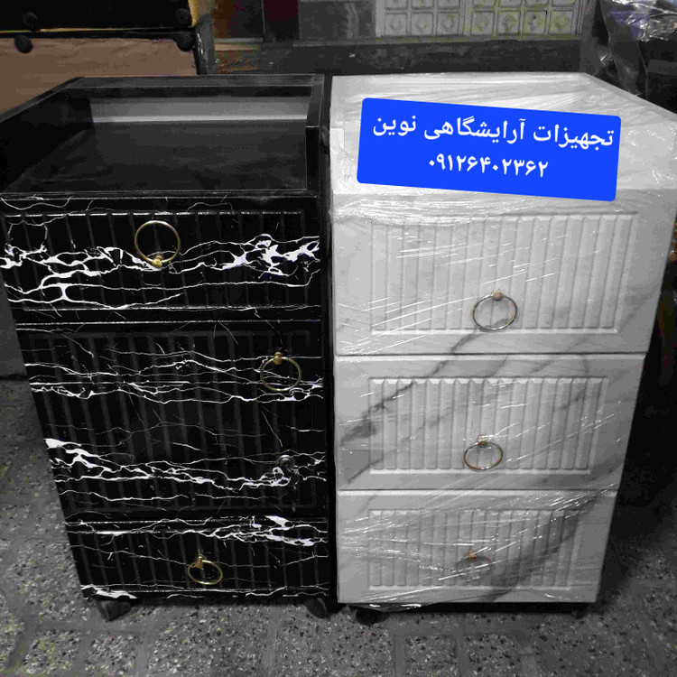 ترولی چوبی آرایشگاهی وکیوم دررنگ بندی سفیدومشکی کپی