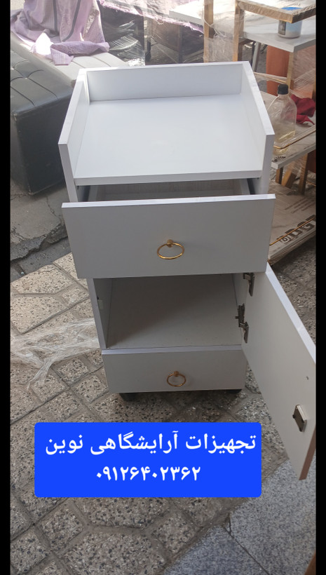 ترولی آرایشگاهی دوکشو یه درقفلدار دررنگ بندی سفیدومشکی