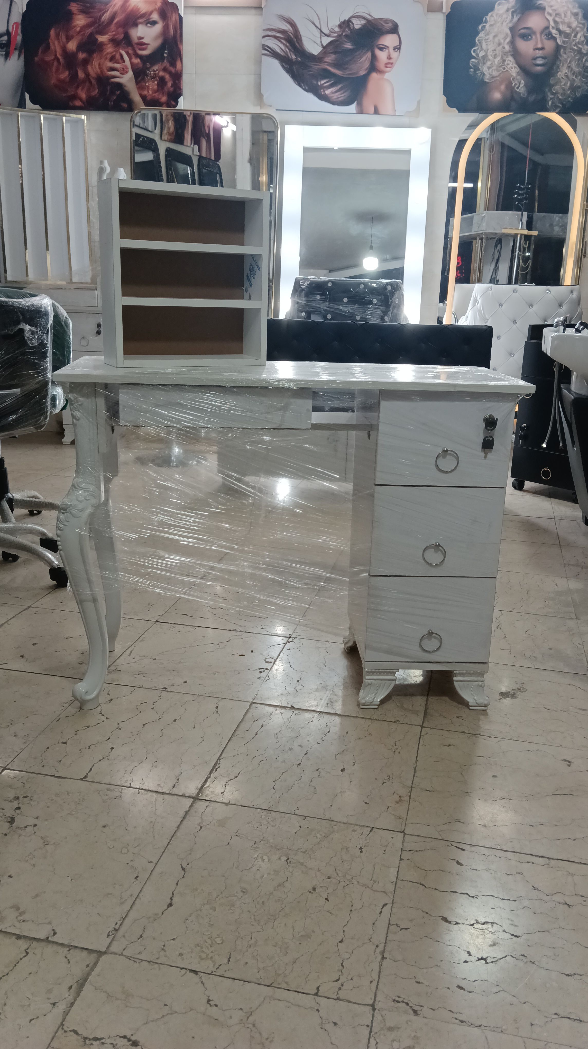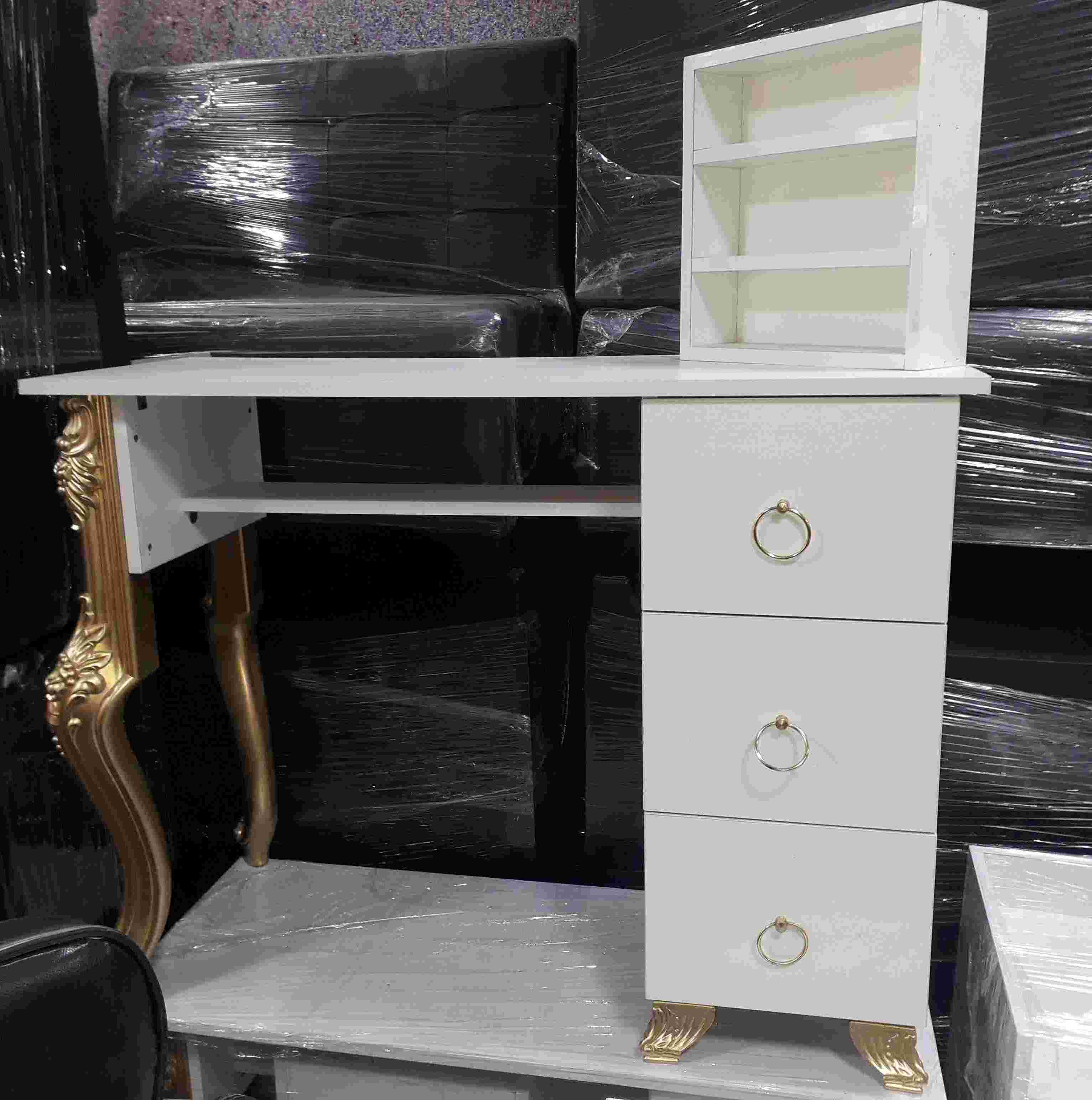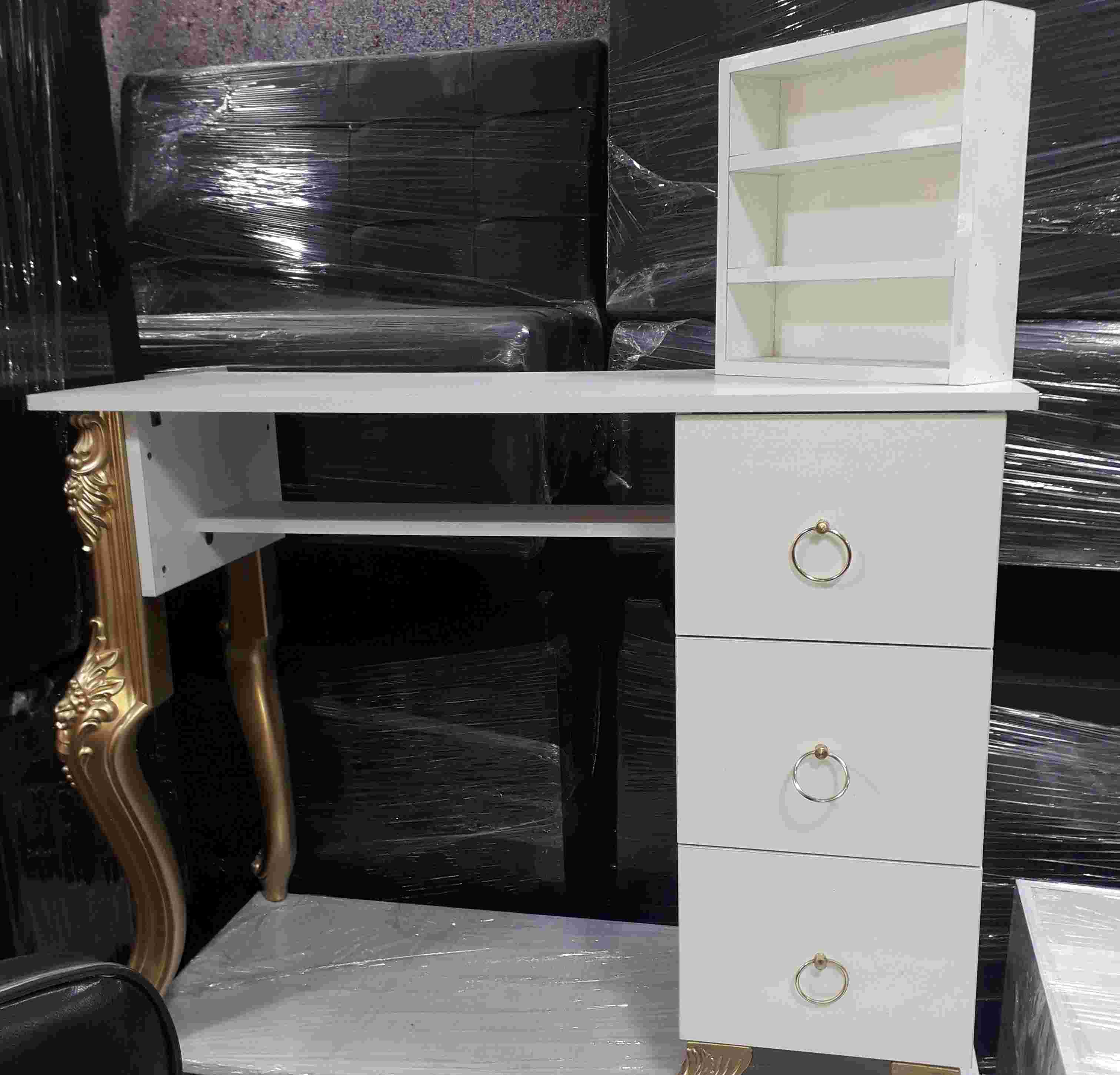 میز ناخن چوبی پایع سلطنتی عرض ۰۴دریک متر ارتفاع ۷۷اززمین همراه با استند لاک درر نگ بندی پایه طلایی پایه سفید
