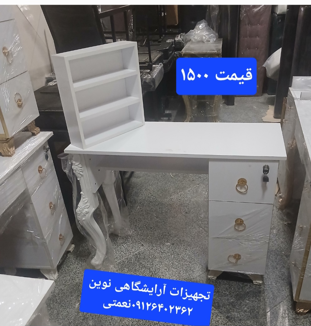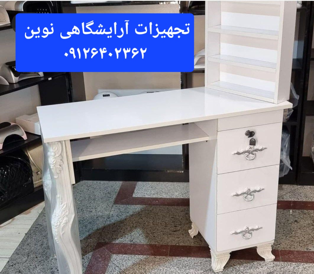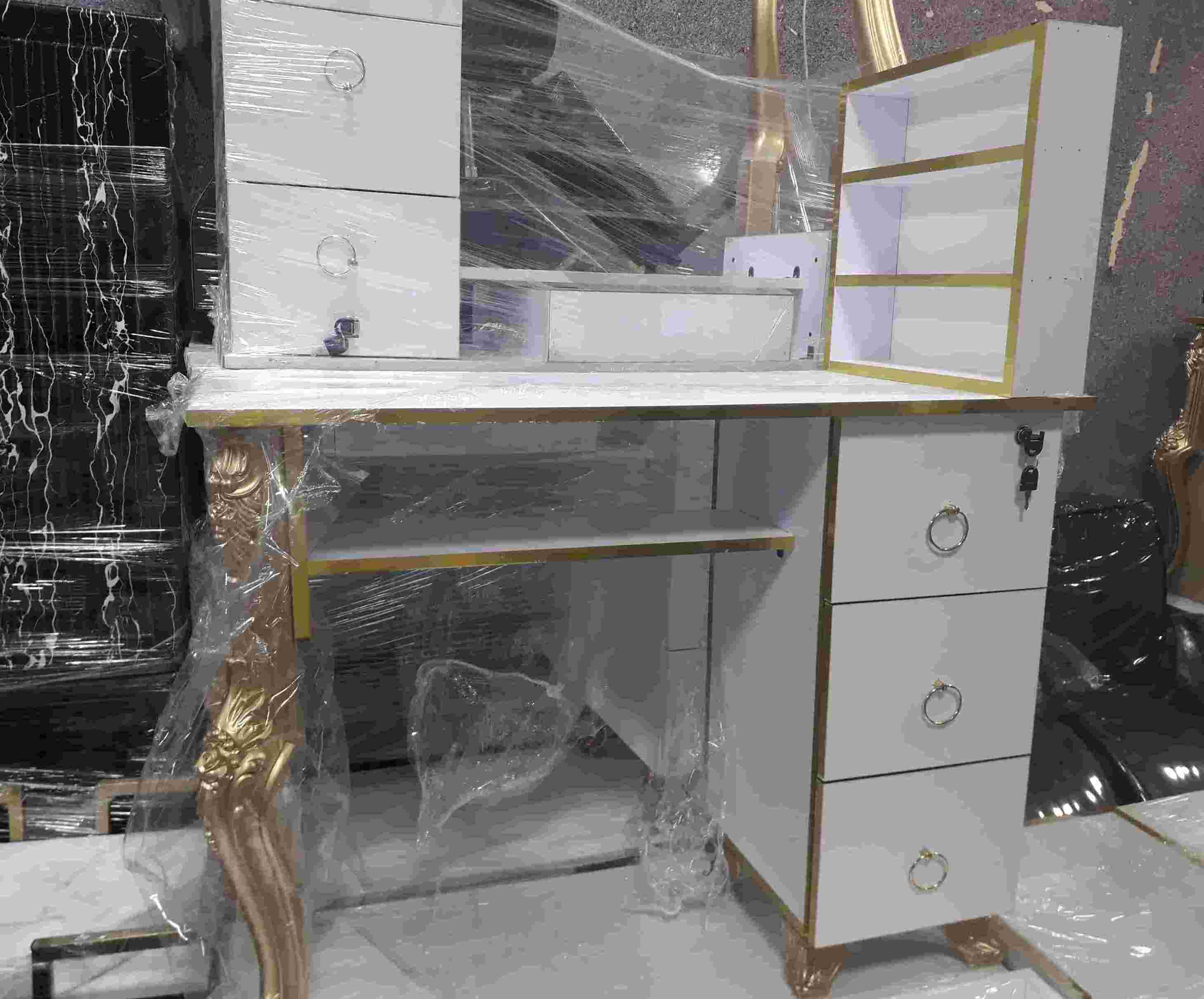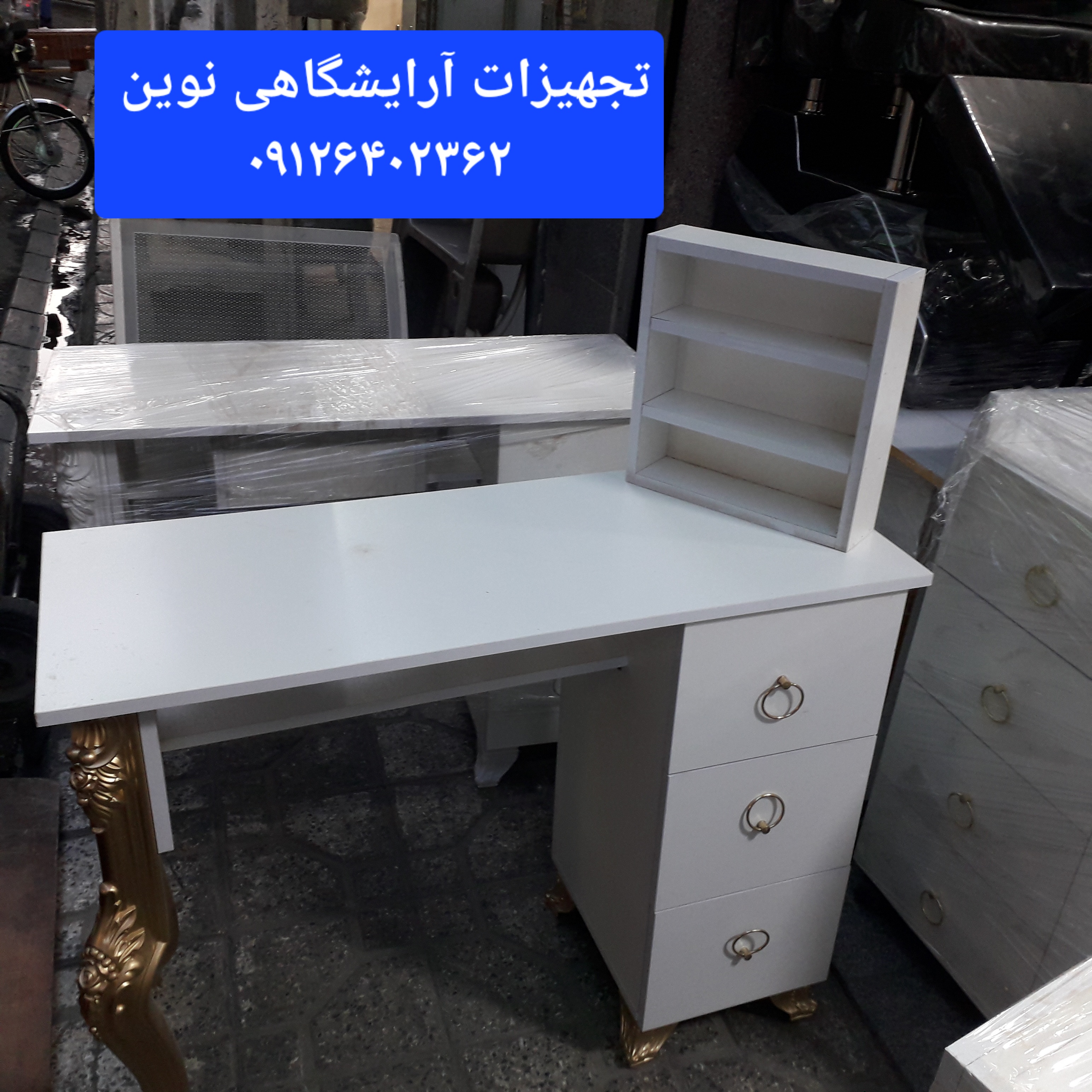 میز ناخن چوبی پایع سلطنتی عرض ۰۴دریک متر ارتفاع ۷۷اززمین همراه با استند لاک درر نگ بندی پایه طلایی پایه سفید