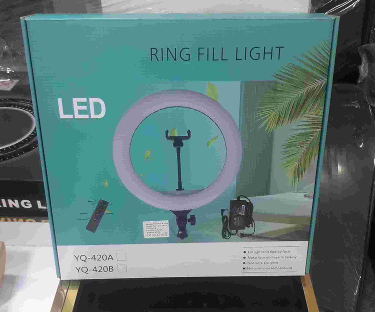 رینگ لایت سایز ۵۲دارای سه تا هولدر موبایل وچهاررنگ سفید آبی زردصورتی خیلی کم رنگ ۷۰وات کنترلیه تنظیم نورداره