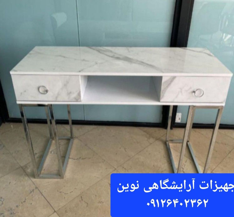 میزناخن آرایشگاهی چوبی تک نفره پایه فلزی دررنگ بندی سفیدومشکی