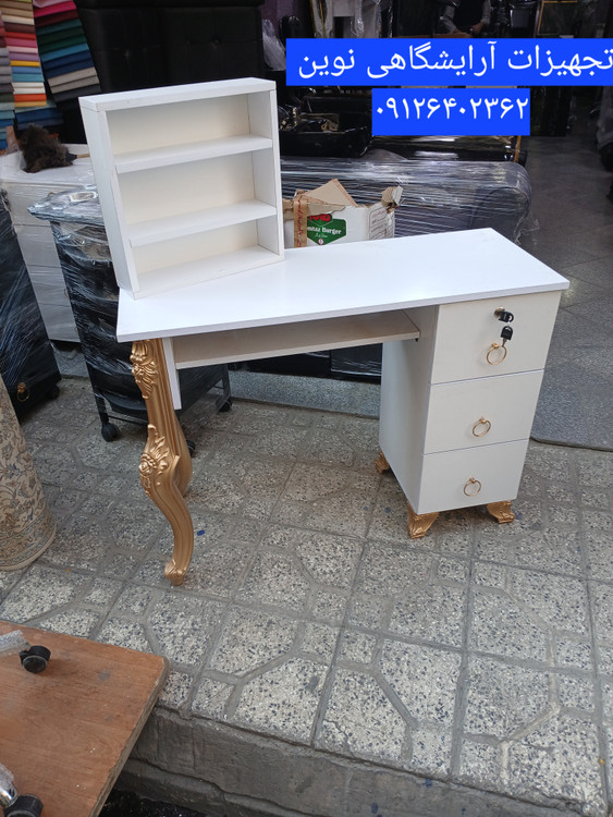 میز ناخن چوبی یک متری دررنگ بندی مشکی وسفید بااستندلاک