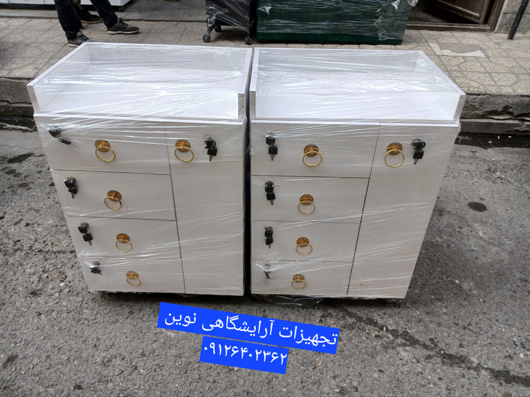 ترولی چوبی قفلدار 4 کشو یه در کمد دار